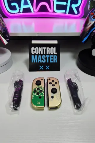 Mandos personalizados para Nintendo Switch con un diseño único. - Correas de sujeción de Regalo. - Diseño temático de The Legend of Zelda. - Iluminación LED RGB. - Incluye dos mandos.