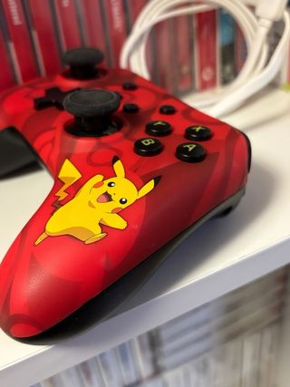 Mando de Nintendo Switch con diseño de Pikachu. Funciona perfectamente y esta en buen estado. Se puede ver y probar sin compromiso en su switch (el adapador usb no viene incluido). - Color rojo con detalles de Pikachu. - Conexión por cable. - Incluye su cable.