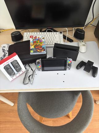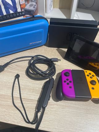Nintendo Switch + accesorios – Muy cuidada Vendo Nintendo Switch en muy buen estado, funcionando perfectamente. Incluye todo lo necesario para jugar Incluye: • Consola Nintendo Switch • Dock para TV • Grip para Joy-Con • Joy-Con morado y amarillo (sin drift) • Correas para mandos • Cable HDMI • Cargador (no es el original pero funciona sin problema) • Estuche rígido de transporte • Funda protectora Siempre usada con cuidado y guardada en su funda. Pantalla en buen estado. Lista para jugar desde el primer momento 🎮 Entrega en mano o envío.