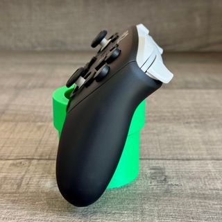 Soporte para mando de Nintendo Switch Pro. - Diseño en color amarillo y blanco. - Decorado con el símbolo de interrogación característico. - Impreso en 3d de alta calidad
