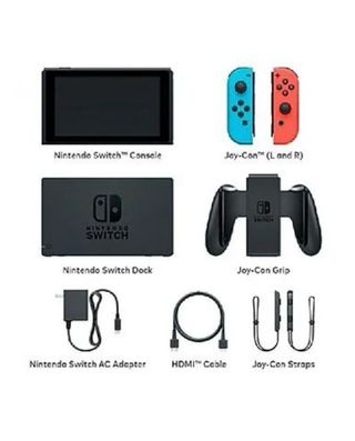 Consola Nintendo Switch en colores azul y rojo, lista para jugar. - Incluye consola, Joy-Con (L y R), agarre Joy-Con, base Nintendo Switch, adaptador AC, y correas Joy-Con cable HDMI no un kit de fundas una funda para la Nintendo una pieza para guardar los juegos y 1 mando inalámbrico