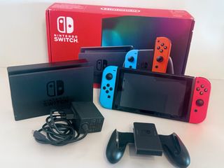 Consola Nintendo Switch muy bien cuidada, no ha sido tratada por niños y está prácticamente nueva. Incluye: - Consola. - Base de carga para Joy-Con. - Adaptador de corriente. - Caja original - Soporte mandos Joy-Con. Los Joy-Con en perfecto estado, no fallan, ni los he tenido que sustituir nunca.