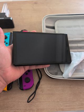 Nintendo Switch con accesorios. Todo en perfecto estado. Funda para guardarla Cargador y HDMI Soporte mando para los joycons. Lo vendo con dos juegos: The Legend of Zelda Breath of The Wild The legend of Zelda Tears of the Kingdom. Se vende sin caja.