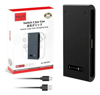 Accesorio para cargar y sujetar los mandos Joy-Con de Nintendo Switch. - Diseño ergonómico para un mejor agarre. - Indicadores LED de carga. - Incluye cable de carga USB-C.