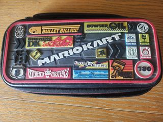 Funda negra para transportar tu Nintendo Switch. Protege tu consola y accesorios. - Diseño resistente. - Cremallera para cierre seguro. - Logo de Nintendo Switch. Caben los siguientes objetos: -mandos/los separados y el conjunto -cargador -Nintendo switch -juegos (individualmente sin la carcasa de plastico)