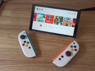 Se vende Nintendo Switch Oled practicamente nueva con varios accesorios. Todo en perfecto estado, practicamente sin uso. Consola con 2 joy con, base estacion soporte TV y 2 mandos por 300 euros. Controlador Beboncool Jc200 4 Joy Con Bolsa de almacenamiento Estacion de Soporte TV 2 volantes 4 mandos Cargador Joy Cons Estuche para guardar juegos 2 estaciones de acoplamiento TV portatiles