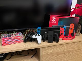 Consola Nintendo Switch con accesorios. Precio negociable - Incluye 3 Joy-Con en azul y rojo. - Base de carga para Joy-Con. - Cable HDMI y adaptador de corriente. - Mando - Adaptador para Joy-Con para hacerlo mando - 5 juegos: Mario Kart 8 Deluxe, Animal Crossing New Horizons, Mario y Sonic en los Juegos Olímpicos Tokio 2020, Super Mario Bros Wonder, The Legend of Zelda
