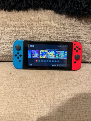 Nintendo Switch en perfecto estado. Incluye dos mandos, uno azul y otro rojo. - Consola en excelentes condiciones. - Dos mandos Joy-Con incluidos.