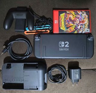 Consola Nintendo Switch V2 con sus accesorios. - Base de carga. - Cargador original. - Acople para mandos. - “tapas” para los joycon con correa. - Fundas para los joycon con relieve (muy cómodos la verdad) - Funda para la consola. - Maletín “de viaje” para llevarlo todo. tengo también la caja original, la tengo guardada pero puedo enviar fotos. la vendo sin polvo ni pelitos de gato 😂 es que estaba guardado el maletín.