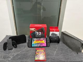 Switch 2 con protector de pantalla desde el primer dia+donkey kong+mando pro original+funda de viaje+funda anti-polvo