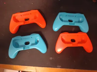 Dos soportes para mandos Joy-Con de Nintendo Switch. Uno en color naranja y otro en color azul. - Diseño ergonómico. - Compatible con Nintendo Switch.