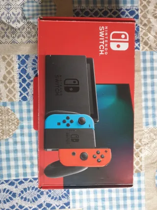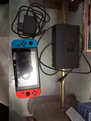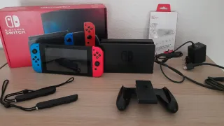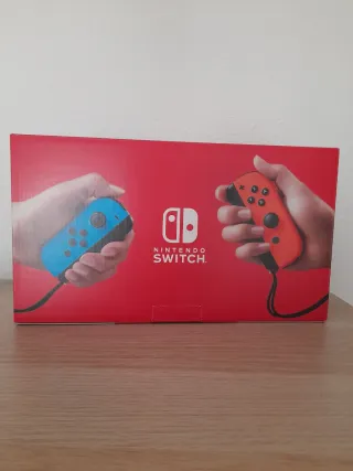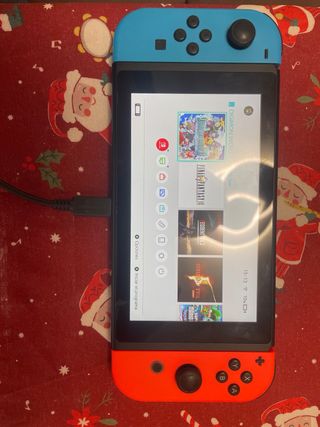 Consola Nintendo Switch con Joy-Cons en azul y rojo. - Incluye base de carga. - Adaptador de corriente. - Mandos Joy-Cons Está en perfecto estado, tiene muy poco uso, no tiene ninguna raya ni desgaste. Caja original incluida.