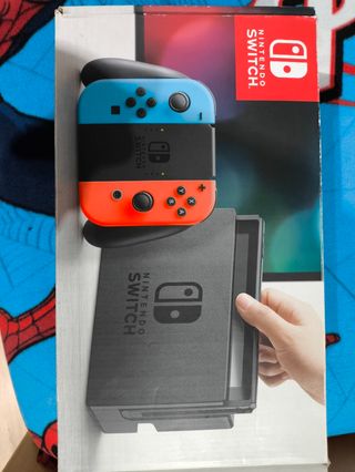 Consola Nintendo Switch con Joy-Cons en rojo y azul. - Diseño icónico de la consola. - Mandos Joy-Con desmontables.
