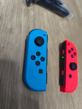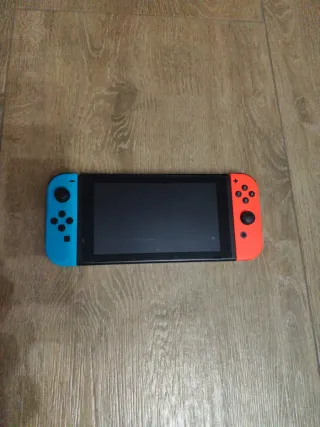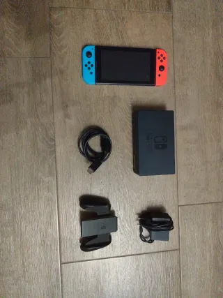 Videoconsola Nintendo Switch V1 azul y roja completa con accesorios La batería ha sido reemplazada por una nueva hace 3 meses. Incluye: - Base de carga (Dock) - Soporte para los mandos - Cargador oficial usado Funcionando a la perfección, como el primer día, Joy-Cons sin drift Algunos arañazos físicos superficiales