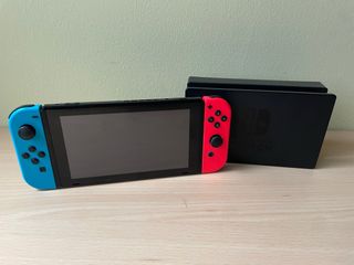 Nintendo Switch en buen estado. Incluye la consola y el soporte de carga. Perfecta para jugar en casa o mientras viajas. Tenemos caja original - Consola en perfecto estado. - Incluye soporte de carga. -Incluye 2 mandos que funcionan perfectamente -Incluye 2 volantes para juegos de coches -Incluye cascos para escuchar musica -Incluye Poker Ball