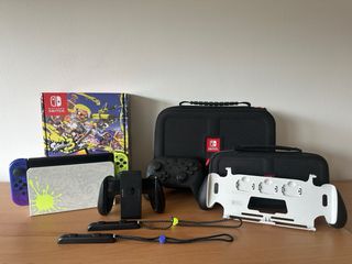 Consola Nintendo Switch OLED Edición Especial Splatoon 3. - Diseño único inspirado en Splatoon 3. - Pantalla OLED vibrante. - Joy-Con con colores morado y verde. -Muy poco uso, siempre con protector de pantalla y funda, la vendo por compra de la Nintendo Switch 2. -Tengo ticket de compra, 359,99€. -También incluyó funda de viaje para la consola y funda de viaje de consola y todos sus accesorios totalmente originales y como nuevos. -Mando pro original de Nintendo comprado por 69,99€ sin apenas uso. -Accesorio de agarre ergonómico.