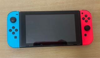 Nintendo Switch en perfecto estado. Incluye la consola, dos mandos Joy-Con (uno azul y otro rojo) y todos sus accesorios originales. - Consola impecable. - Mandos Joy-Con en excelentes condiciones. - Caja original incluida. Se regalan dos volantes con su embalaje original