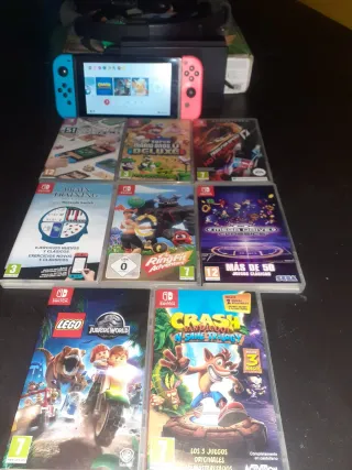 Consola Nintendo Switch y 8 videojuegos. 2 mandos,caja, manual,en perfecto estado.