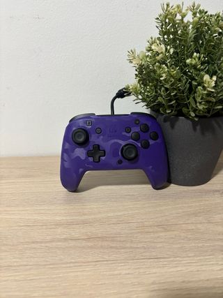 Mando Pro para Nintendo Switch en un llamativo color morado con diseño de camuflaje. - Diseño de camuflaje morado. - Conexión por cable.