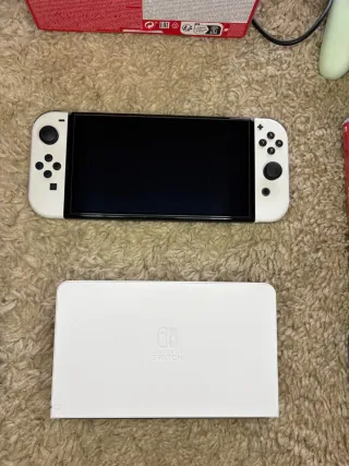 Consola Nintendo Switch modelo OLED en color blanco. Incluye mandos adicionales y un juego. En perfecto estado. Todo como nuevo. - Mandos extra. - Juego incluido.