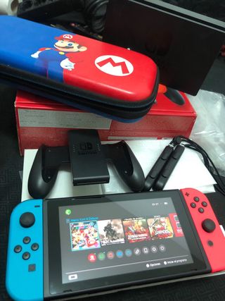 Consola Nintendo Switch en perfecto estado. - Incluye base de carga. - Mandos Joy-Con en rojo y azul. - Estuche de transporte con diseño de Mario.