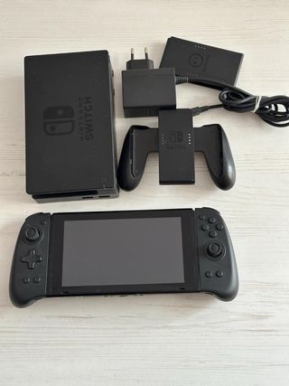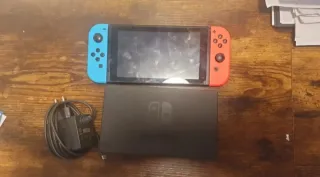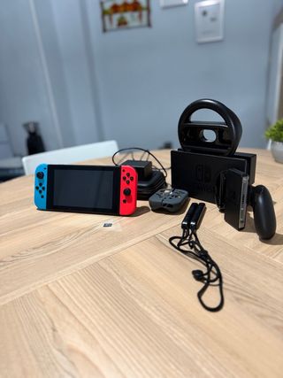 Consola Nintendo Switch completa, lista para usar. Incluye todos los accesorios necesarios para empezar a jugar. - Base de carga. - Mandos Joy-Con (izquierdo azul, derecho rojo). - Adaptador de corriente. - Funda protectora. EN BUENISIMO ESTADO NO NEGOCIABLE