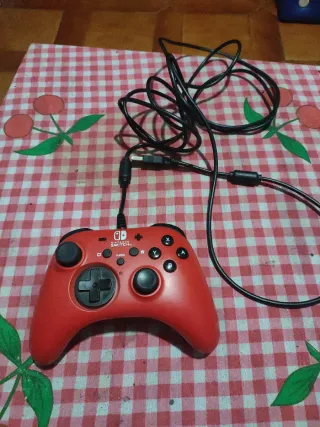 Mando de color rojo para Nintendo Switch, con conexión por cable. - Diseño ergonómico. - Botones de acción y cruceta. - Conexión USB.