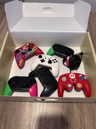 Mandos Pro para Nintendo Switch. - Mando no oficial diseño splatoon 2 - 25 (vendidos) - Mando blanco led - 30 - Mando rojo con diseño de Mario Hori - 30 - Mando rojo con diseño de Mario con cable- 15 -Mando pro original- 30