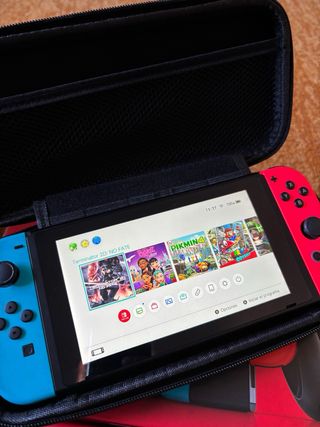 Consola Nintendo Switch con sus mandos Joy-Con. - Mandos Joy-Con en color azul y rojo. - Incluye funda protectora negra. - Con muchos juegos - con todos sus accesorios originales