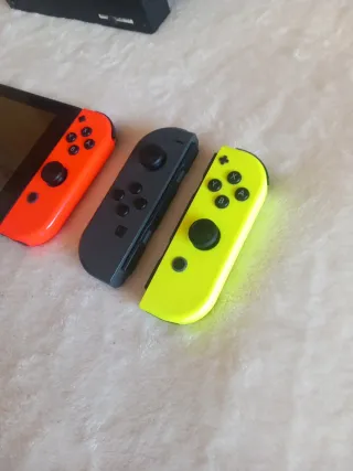 Consola Nintendo Switch en su edición especial con Joy-Cons en rojo y azul. Ideal para disfrutar de una gran variedad de juegos. - Incluye consola y Joy-Cons Originales azul y rojo. - 2 Joy- Cons extra originales en verde y violeta, los 4 con sus colgadores. - Pantalla en perfectas condiciones. - Base de conexión, adaptador luz original y cable hdmi. - acoplador de dos mandos negro. - 2 estuches porta juegos Nintendo. - Caja original. - Muy cuidada, tendrá un año y 2 meses aproximadamente. - Reseteada. NO INCLUYE JUEGOS. PREFIERO VENTA EN PERSONA.