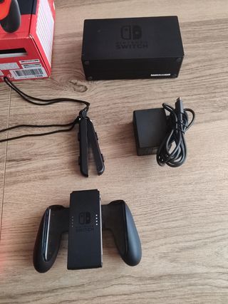 Vendo Nintendo Switch en muy buen estado, con todos sus accesorios originales y extras incluidos. - Consola con Joy-Con azul y rojo. - Juego preinstalado Nintendo Switch Sports. - Dock original. - Fuente de alimentación y cable HDMI. - Grip para mandos. - Cargador múltiple para Joy-Con. - Correas de seguridad para los mandos. - Funda rígida de transporte con espacio para juegos. - Extras: botones personalizados, soporte ajustable y correa para brazo (ideal para juegos de deporte). Todo funciona perfectamente. Lista para jugar desde el primer día. Apenas se ha usado.