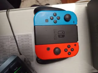 Consola Nintendo Switch en perfecto estado, con muy poco uso. - Incluye cargador original (no está en fotos) - incluye un aparato para producir lo que emite la nintendo en la tele (tampoco le saqué foto) -incluye dos tipos de mando diferente para poder usar los joyos -joyos en perfecto estado nin drift ni estropeados ni sucios - pantalla sin ningún rasguño o grieta