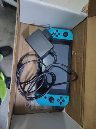 Nintendo Switch en perfecto estado, con sus mandos y caja original. Incluye funda protectora. - Consola Nintendo Switch. - Dos mandos Joy-Con (uno rojo y otro azul). - Caja original. - Cargador original. - Funda de transporte.