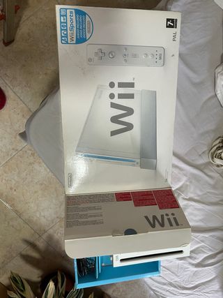 Wii Nintendo, color blanco. Cables, mandos en color blanco, sensor de movimiento en perfectas condiciones. Se vende con dos juegos incluidos. Está casi sin usar.
