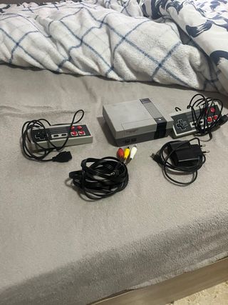 Consola de videojuegos estilo retro, réplica de la Nintendo Classic. - Incluye dos mandos. - Cableado para conexión AV y adaptador de corriente. - No se si funciona, la tengo de hace mucho tiempo pero no la utilizo, debe de funcionar, porque cuando la enchufas se encienden las luces - Precio Negociable