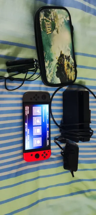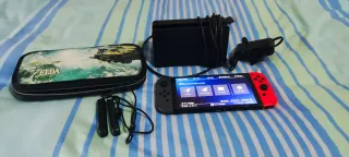 Nintendo Switch de primera generación en colores azul y rojo. Está en muy buen estado y se entrega con funda protectora. - Incluye consola y funda. - Cargador original/stand. Caja original - Mandos originales - Lanzador - No baneada Siempre en modo avion - Ningún arañazo. - Batería en perfecto estado - Protector plástico - Modelo original de Nintendo. Lo cambiaría por un NAS