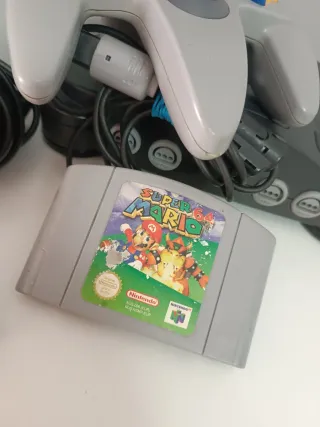 Consola N64 + Dos MandoS original + Cableado. Juego premium: Mario kart.🏁 ✅Algunas pequeñas marcas de uso. 🎮Un mando bueno y otro usadopero aún con jugabilidad ✅Consola Funcional y probada. ⚒️Se envía lo más limpia posible ⚠️ Amplia selección de juegos y accesorios para N64. Pregunta sin compromiso. 🎮 Solo N64, para auténticos fanáticos. 🚀 Envío rápido y seguro | Trato profesional y de confianza. 📦 Opción de packs a medida. ✅ Vendedor de 5 estrellas | Respuestas rápidas y atención personalizada.