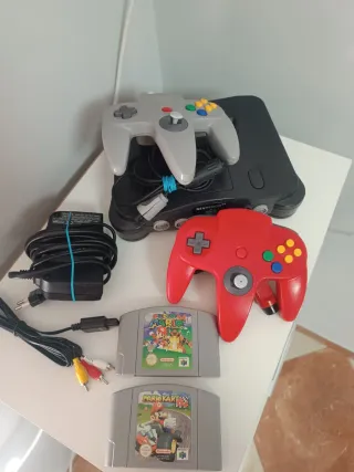 Consola N64 + Mando original + Cableado. 🎮Juegos premium en un mismo anuncio: 🏁Mario Kart 64, 🍄 Super Mario 64, 💥Pokémon Stadium, 🤛 Super Smash Bros. ✅Algunas pequeñas marcas de uso. ✅Consola Funcional y probada. ⚒️Se envía lo más limpia posible ⚠️ Amplia selección de juegos y accesorios para N64. Pregunta sin compromiso. 🎮 Solo N64, para auténticos fanáticos. 🚀 Envío rápido y seguro | Trato profesional y de confianza. 📦 Opción de packs a medida. ✅ Vendedor de 5 estrellas | Respuestas rápidas y atención personalizada.