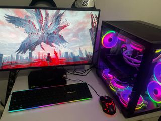 Equipo de PC gaming con iluminación RGB personalizable. Ideal para juegos y tareas exigentes. ✅Componentes✅ Placaba base: MSI MPG B550 Gaming Plus Ram: 32 GB DDR4 16gb Kingston FURY 16gb Corsair Grafica: ASUS RTX 3060 Ti 8GB Refrigeración liquida 240 ARGB Fuente: 750w 80 plus Case: MARS GAMIMG DOBLE CAMARA 9 Ventiladores ARGB con mando o software Monitor: ASUS FULL HD 165hz 1ms Gaming Nvidia-G-SYNC Teclado: COUGAR VANTAR ARGB MAUSE TRONIC ARGB ✅ Perfecto para GAMING O tareas exigentes. ✅Windows 11 instalado y activado✅