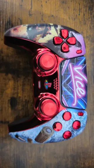 Mando de PS5 totalmente personalizado temática de gta vice city -joysticks TMR recién instalados para que te olvides del drift!