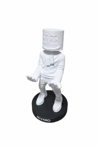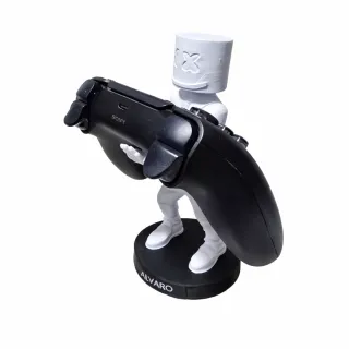 Soporte para mando de consola, diseñado e impreso en 3D. Ideal para exhibir tu mando. - Diseño inspirado en Marshmello. - Base negra con nombre personalizado'