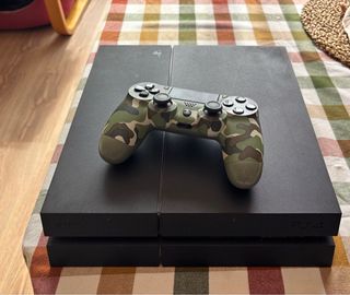 Consola PlayStation 4 en color negro, con un mando personalizado en camuflaje. - Mando con diseño de camuflaje. - Incluye consola y mando.
