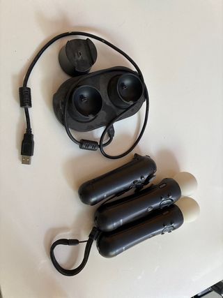 Pack de dos mandos PlayStation Move de Sony. - Mandos de control para PlayStation. - Diseño ergonómico en color negro. - Incluye pulsera de seguridad.