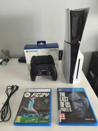 Se vende consola PlayStation 5 en color blanco. - Incluye un mando DualSense con su caja y cables originales. - Incluye los juegos FC 24 y The Last of Us Parte II. Pregunta sin compromiso.