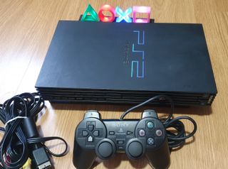 Consola PlayStation 2 modelo Fat en color negro. Mando original de regalo, tiene algunos signos de uso pero funciona bien. Se incluye los cables de corriente y video. La consola lee juegos perfectamente, se puede manadas fotos y videos funcionando. Se puede añadir tarjeta de memoria por 7€ más. Tag: lote pack play PlayStation ps1 ps2 ps3 ps4 mandos juego