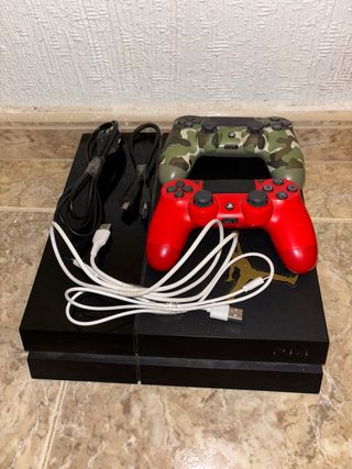 Consola PlayStation 4 con dos mandos. - Incluye consola negra. - Un mando de color rojo. - Un mando con diseño de camuflaje. -Todos Los Cables.