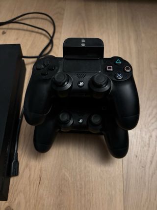 Consola PlayStation 4 en su caja original, lista para disfrutar. - Incluye 2 mandos DualShock 4, uno original - Se acompaña de 4 videojuegos. El nba esta precintado - Modelo en color negro.