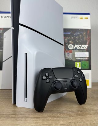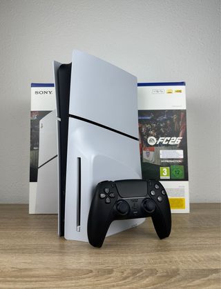 Playstation 5 slim disco 1tb negro mate – Como nueva Todo funcionando correctamente y se entrega tal cual aparece en las fotos Incluye: – Consola, mando original, soporte y cables – Caja, manuales y embalaje original – Garantía de 2 años y 9 meses Estado: – Como nueva, 3-5 usos – Sin fallos ni ningún tipo de problema Entrega: – En mano o envío, respondo rápido