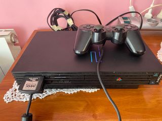 Consola PlayStation 2 en color negro. - Incluye mando. - Incluye cables de conexión y alimentación.