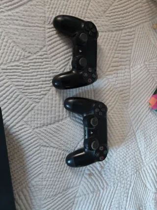 Consola PlayStation 4 en color negro. Comprada en Dubái y utilizada como máximo 10 veces. Incluye dos mandos DualShock para jugar con amigos. • Dos mandos DualShock incluidos. • Cableado y manuales. ------------------------------------------------ Black PlayStation 4 console. Purchased in Dubai and used a maximum of 10 times. Includes two DualShock controllers to play with friends. • Two DualShock controllers included • Cables and manuals included